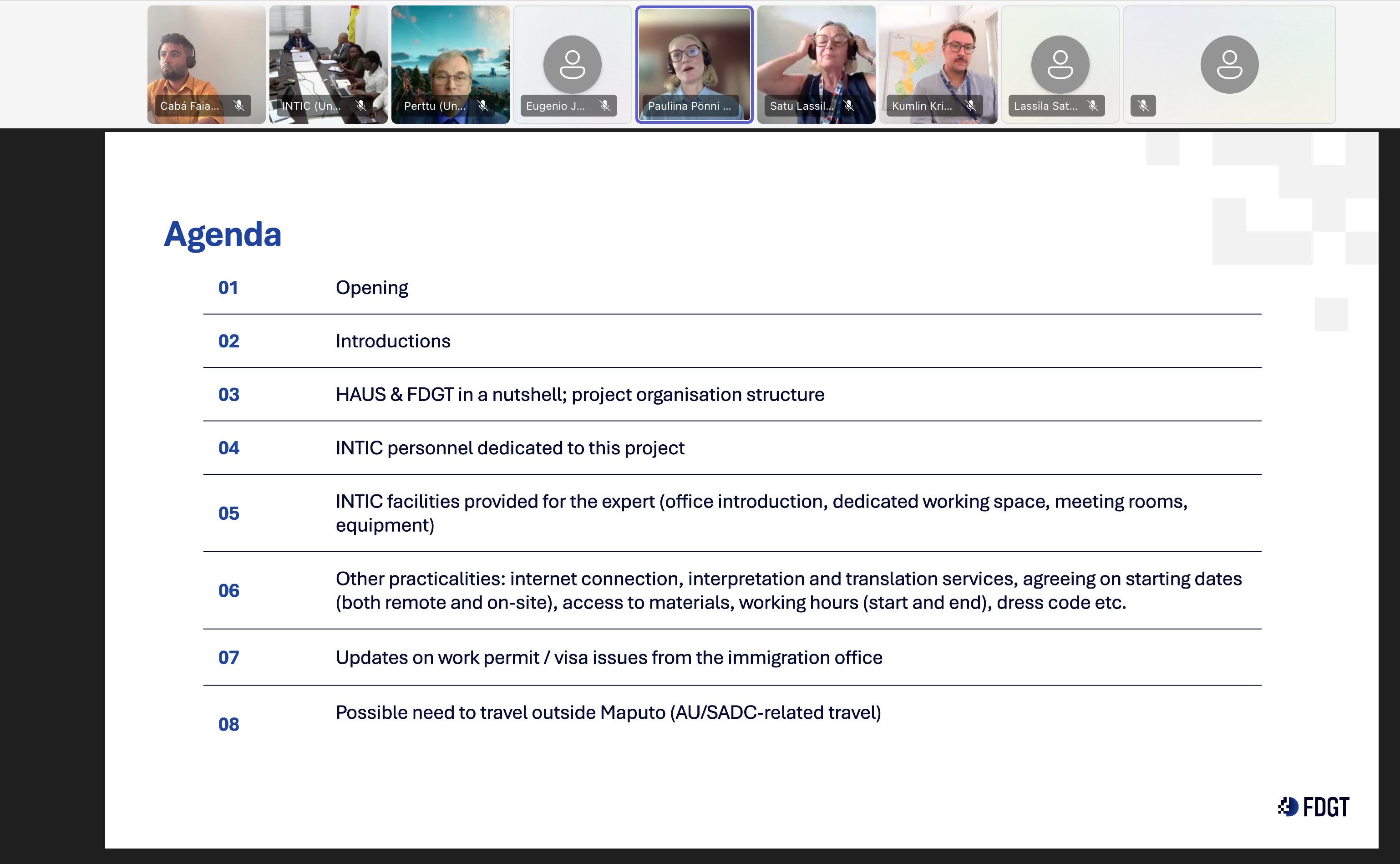 O encontro contou igualmente com a participação da Embaixadora da Finlândia em Moçambique, acompanhada por peritos internacionais, nomeadamente Perttu Luhtakanta, especialista em políticas de Segurança Cibernética; Pauliina Ponia, consultora em transformação digital; e Cabá Faize, representante da União Europeia, os quais partilharam experiências e boas práticas internacionais relevantes para a consolidação desta estratégia.
