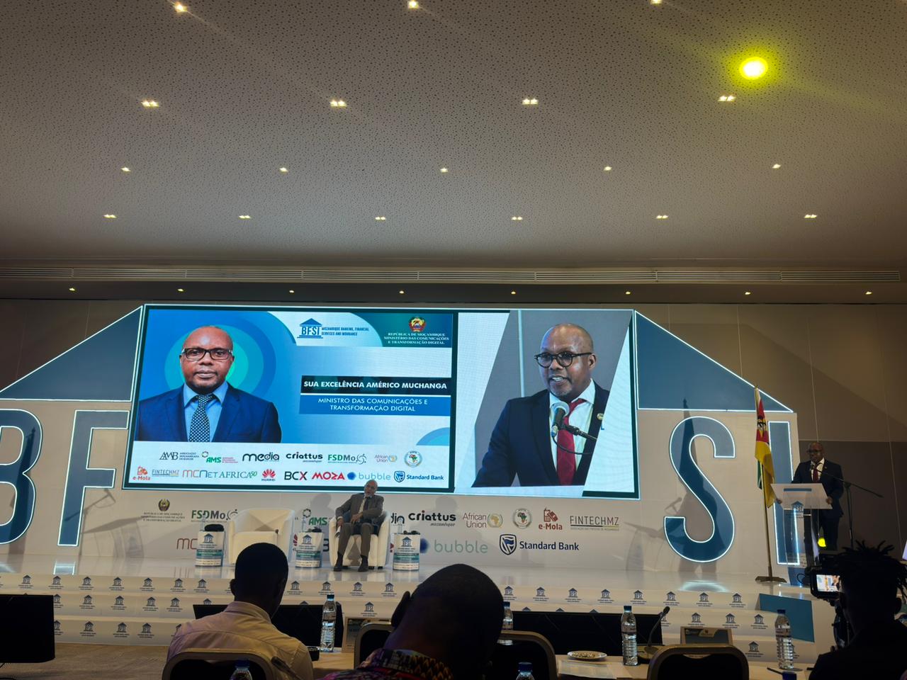 Sob o lema “Transformação Digital e um Ecossistema Financeiro Interoperável”, a sessão de abertura foi presidida pelo Ministro das Comunicações e Transformação Digital, Prof. Doutor Américo Muchanga, que destacou as oportunidades concretas que a transformação digital em curso oferece ao sector financeiro, desde a disponibilização de serviços digitais avançados até ao reforço da interoperabilidade e da segurança dos sistemas, sublinhando a necessidade de preparação e alinhamento institucional para responder às novas dinâmicas.